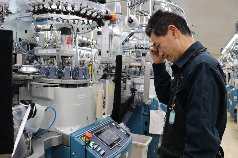 教授の企画協力の下、解剖学の知識に基づいた靴下を再現する為、助野のLAB開発チームにて試編みをスタート。